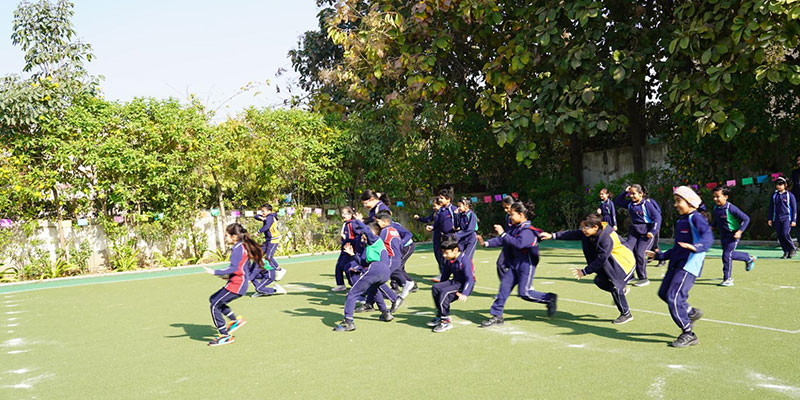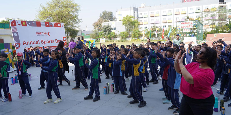 Grades 1 and 2 brought their best to the Khaitan Khel Mahotsav, turning the field into a hub of fun, laughter, and friendly competition. From sprint races to team challenges, our young athletes showcased incredible sportsmanship and team spirit. To keep their energy levels high, hydration stations with refreshing drinks and water were provided, ensuring our champions stayed cool and energized throughout the event. The day concluded with an exciting Zumba session where both students and teachers grooved together, celebrating the spirit of fitness and fun. At KWS, we believe in nurturing active minds and bodies because every step on the field is a step toward growth and confidence.