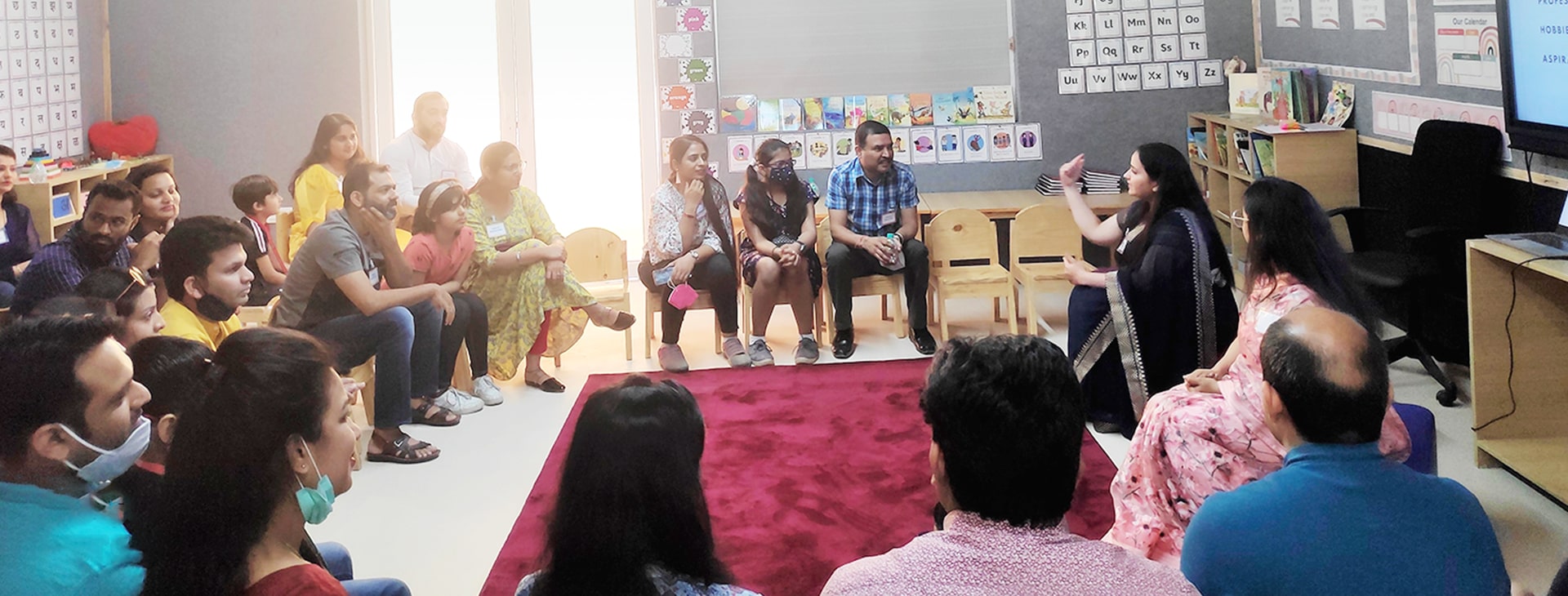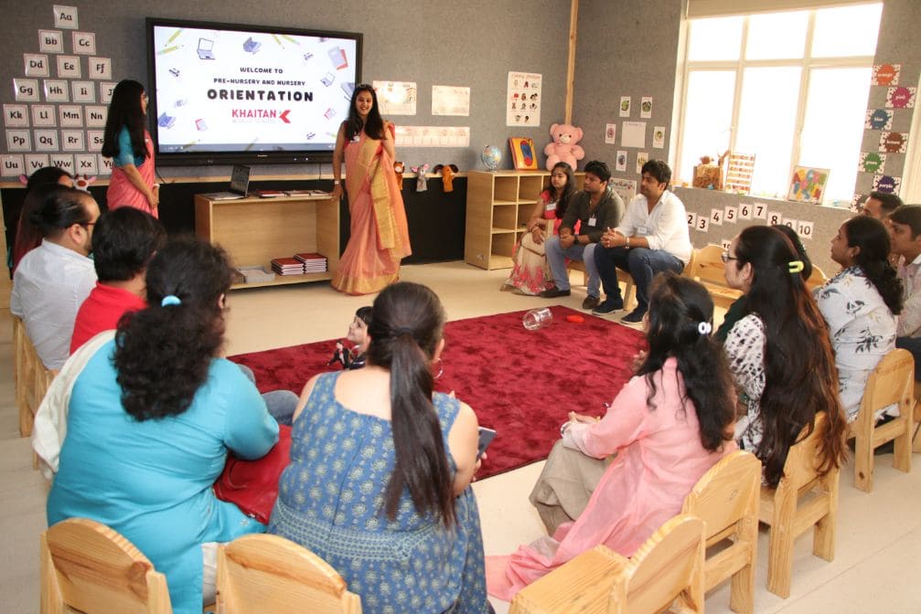 Khaitan World School felt like never before today as the KWS community came together for the first time to celebrate a new beginning. Today we welcomed our parents and children for our very first orientation, taking them through “How a day at KWS will look like for their little ones?”. The school was lit up with smiles, buzzing with laughter and echoed happiness.